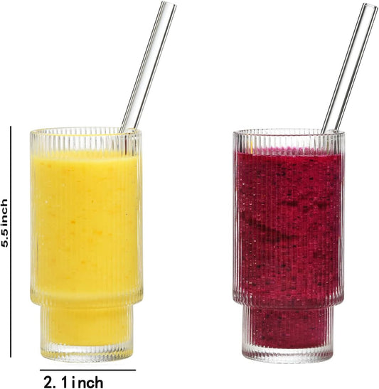 Ribbed Tumblers with Straws Glass Tumbler Cocktail Glasses 6pcs